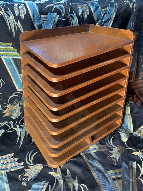 非常に珍しい造形のデスクトップ用書類仕分け棚。